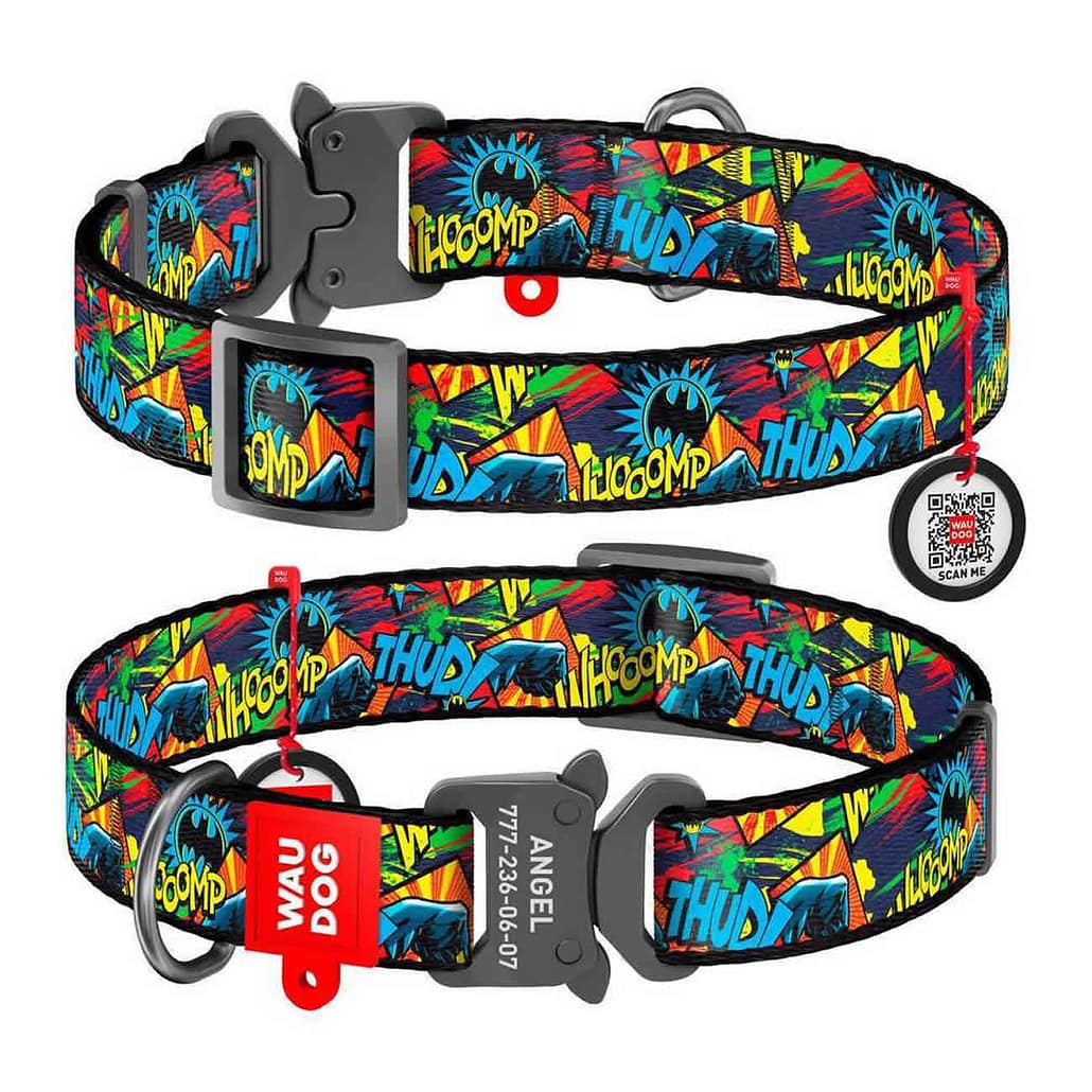 Batman köpek tasması, metal tokalı köpek tasması, ayarlanabilir köpek boyun tasması, WAUDOG Batman tasması, 25 mm köpek tasması, dayanıklı köpek boyun tasması, reflektif köpek tasması