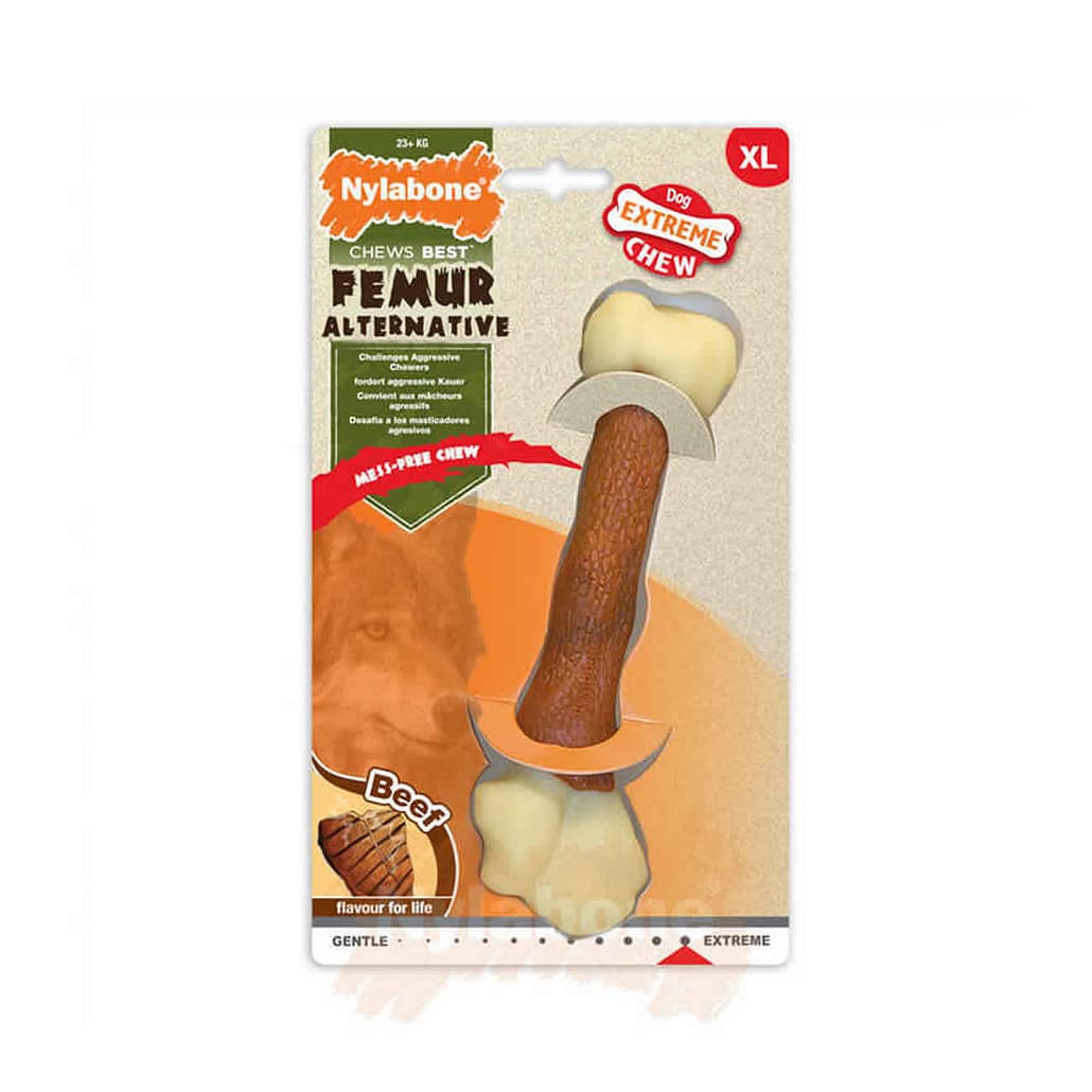 köpek çiğneme kemiği XL, biftek aromalı köpek oyuncağı, nylabone büyük köpek, dayanıklı köpek kemiği, köpek diş temizleme oyuncağı