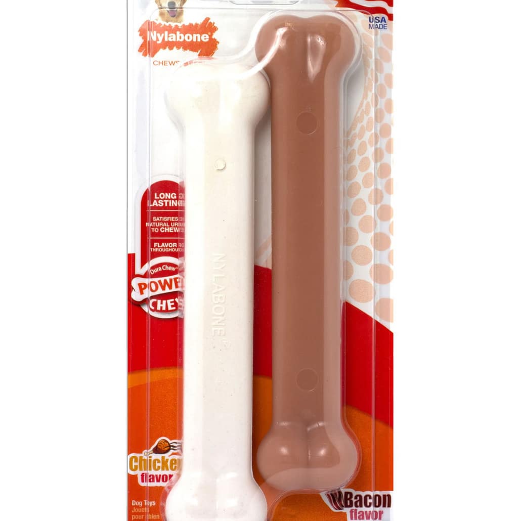 Nylabone Tavuk ve Domuz Aromalı L Boy Çiğneme Kemiği – 2’li Paket, sadık dostunuzun en sevdiği oyuncağı olacak! 🐕❤️